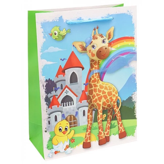 Dream cards Пакет подарочный с мат. лам. Счастливый жирафик 26х32х10 см (L), 210 г ПКП-3478 468-0-088-43478-0