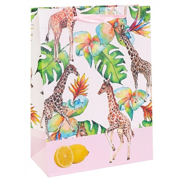 Dream cards Пакет подарочный с мат.лам. 26х32х10см (L) Жираф в тропиках, 210 г ПКП-3143 461-0-144-83143-7