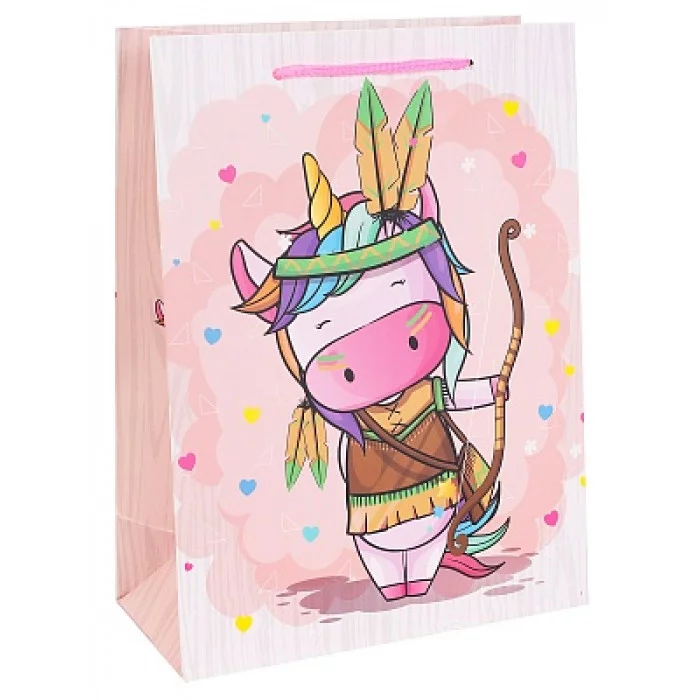 Dream cards Пакет подарочный с мат.лам. 31х40х12см (XL) Единорог луком, 210 г ПКП-3166