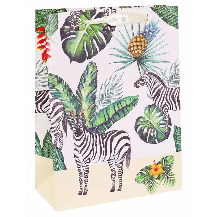 Dream cards Пакет подарочный с мат.лам. 31х40х12см (XL) Зебра в тропиках, 210 г ПКП-3172