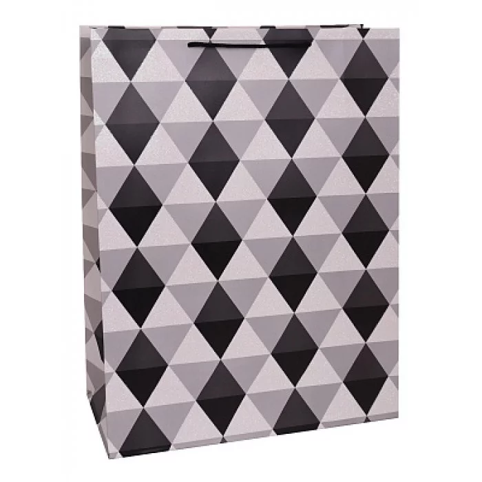Dream cards Пакет подарочный с мат.лам. и глиттером 31х40х12см (XL) Стильные ромбы, черные, 210 г ПКП-2647