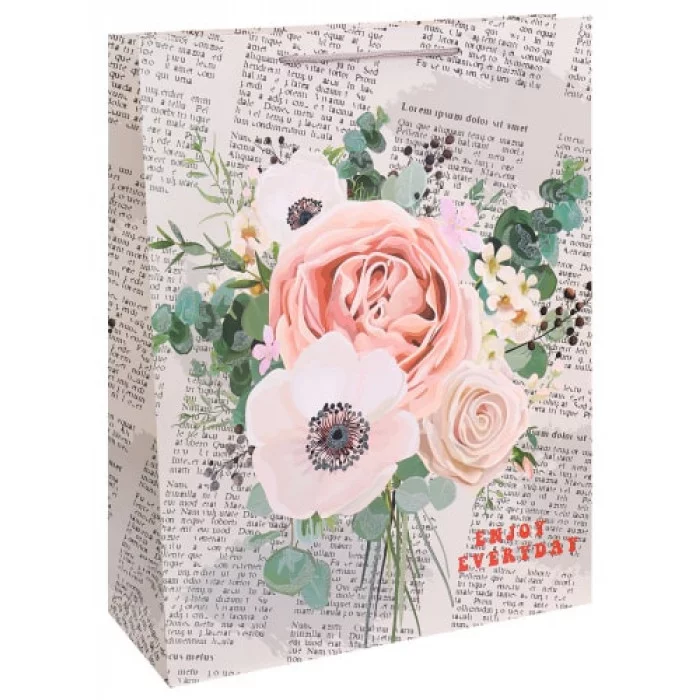 Dream cards Пакет подарочный с мат.лам. и глиттером 31х42х12см (XL) Газета ярким букетом, 210 г ПКП-2614