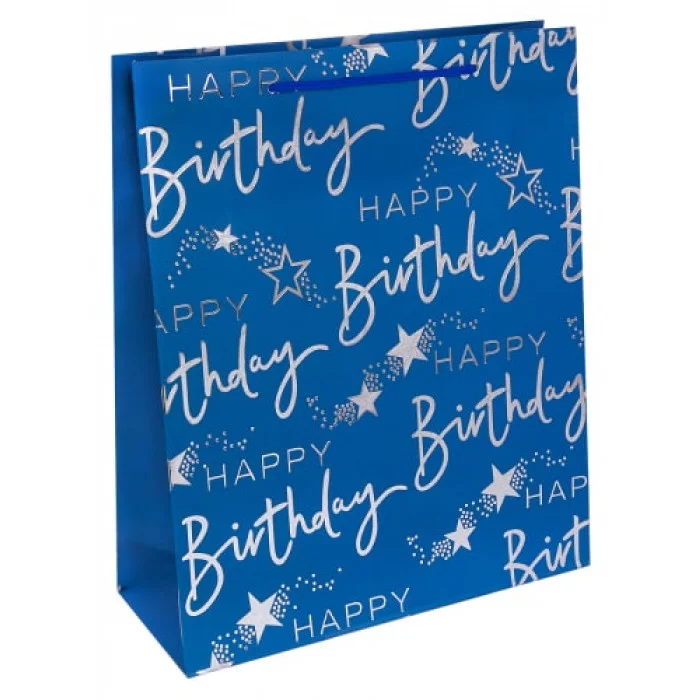 Dream cards Пакет подарочный с мат.лам. и тиснением фольгой 31х42х12см (XL) Счастливого дня рождения, голубой, 210 г ПКП-2617