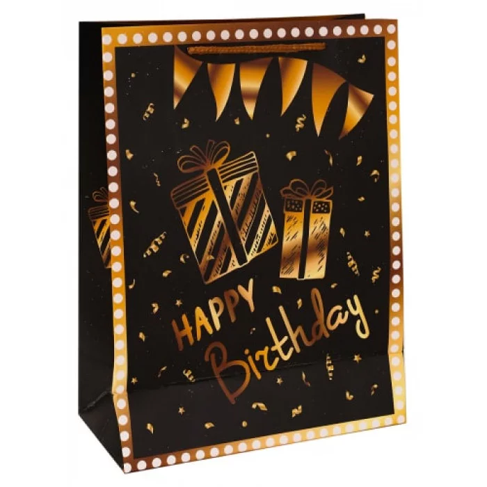 Dream cards Пакет подарочный с мат.лам.и тиснен.фольгой31х40х12см Золотые подарки,чёрн.210г ПКП-3186