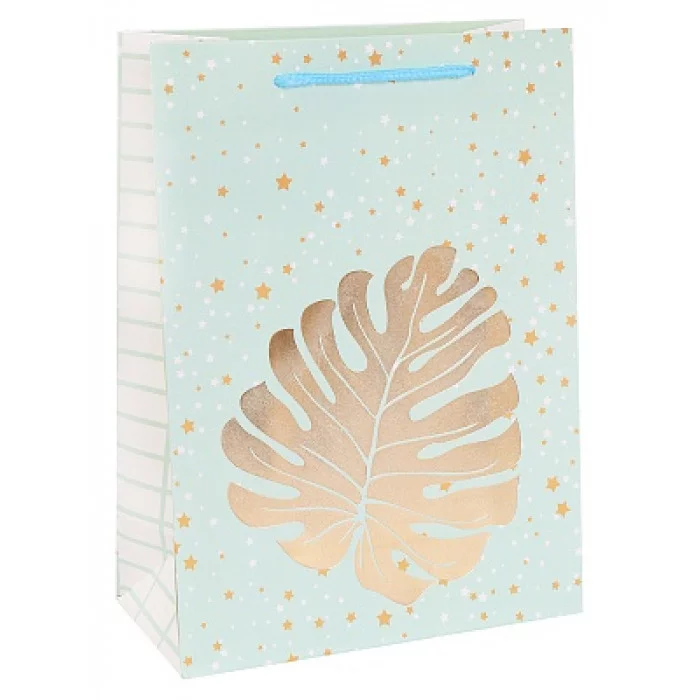 Dream cards Пакет подарочный с мат.лам.и тиснен.фольгой31х40х12см(XL)Золотой листочек,210г ПКП-3159
