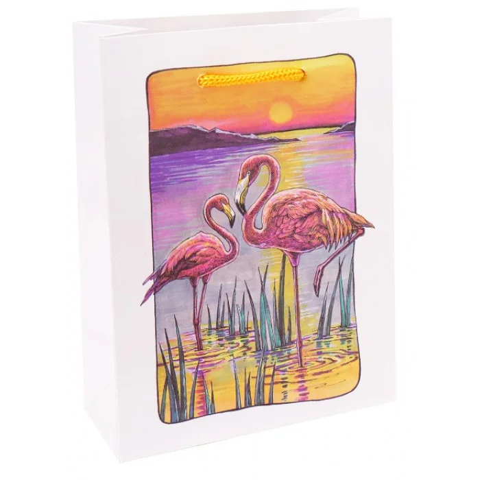 Optima Пакет подарочный с глянцевой ламинацией 11,5х14,5х6 см (S) Фламинго на закате, 128г ППК-6246