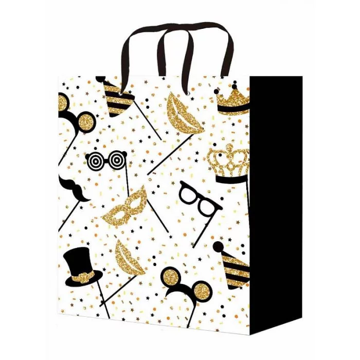 Подарочный пакет идеально подойдет для эксклюзивной упаковки любого подарка! Интересный дизайн усилит приятное впечатление от презента. Пакет с глянцевой ламинацией. Хорошо держит форму. Плотность: 128 гр. Размер: ML (22x31x10 см).