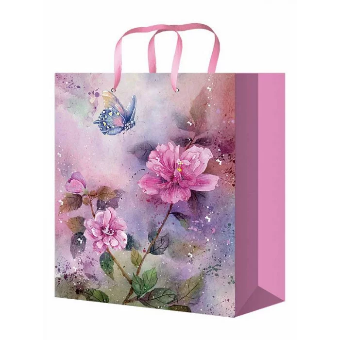 Optima Пакет подарочный с глянц.ламинацией 22x31x10 см (МL) Розовые цветы, 128 г ПКП-4254