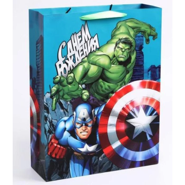 Пакет ламинат вертикальный "С Днем рождения, супергерой!", Мстители, 31 х 40 11 см 2019758