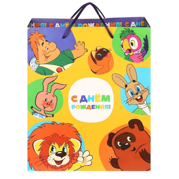 Пакет ламинированный, подарочный, "С Днём рождения", 23х27х11,5 см, Союзмультфильм