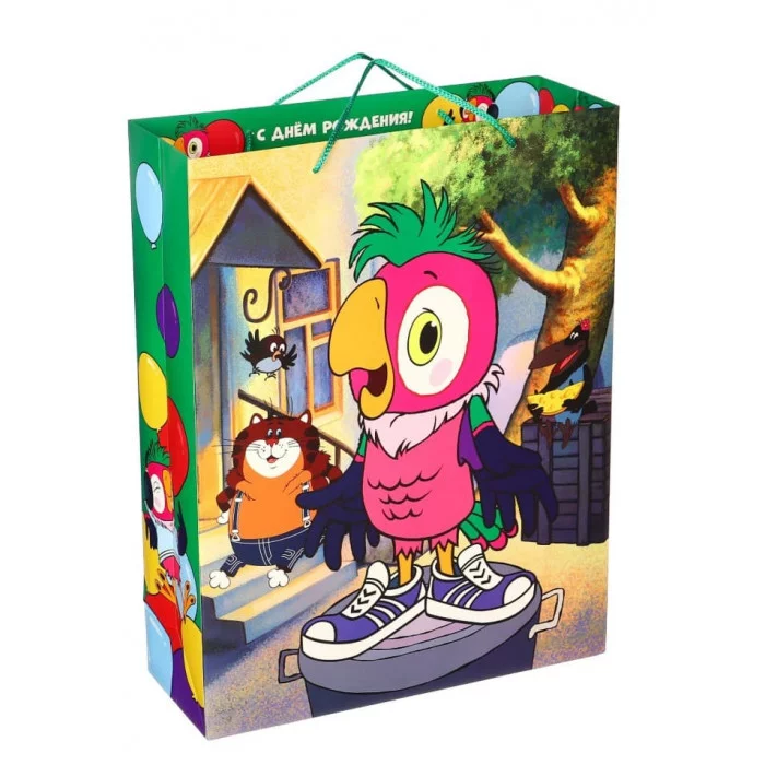 Пакет ламинированный, подарочный, "С Днём рождения!", 31х40х11,5 см, Попугай Кеша 10000792
