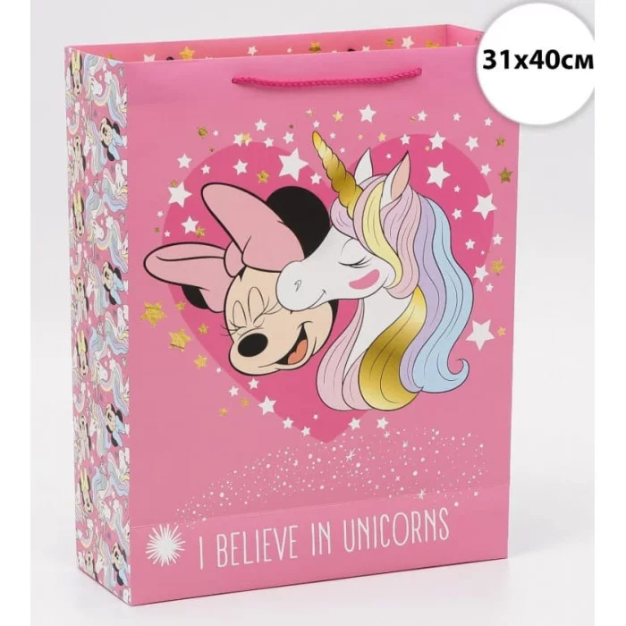 Пакет подарочный "100% unicorn", Единорог. Минни Маус, 31х40х11,5 см 7153484