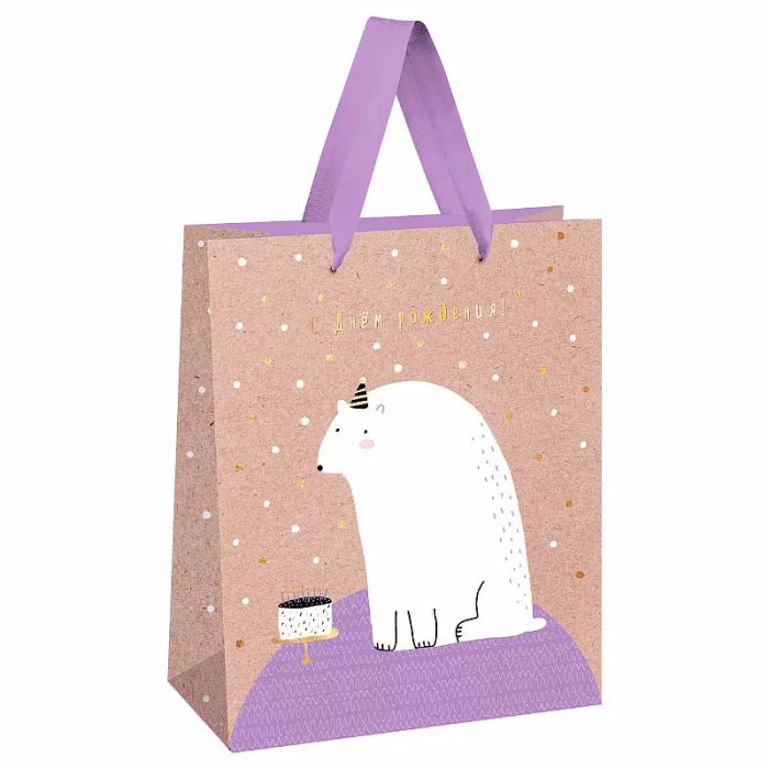 Пакет подарочный 1шт 11*14*6,5см MESHU "С Днем рождения", отд. фольгой, выборочный лак, крафт 354538