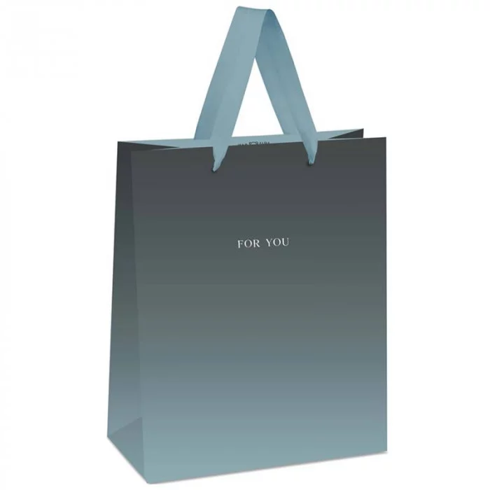Пакеты MESHU – беспроигрышный способ преподнести подарок красиво. Размер подарочного пакета – 18*23*10 см. Изготовлен из плотного мелованного картона с матовой ламинацией и отделкой фольгой. Пакет MESHU Duotone. PowderBlack-blue gradient выполнен в необычном минималистичном дизайне. Получать подарки всегда приятно, а красиво оформленные подарки приятнее вдвойне! Эксклюзивный дизайн, разнообразие отделок и качество – отличительные черты продукции MESHU, воплотившиеся в подарочных пакетах. Ручки пакета – ленточка, которая отличается высокой прочностью и насыщенностью цвета. Дарите подарки с любовью, со вкусом, с MESHU! Материал: мелованный картон; Размер пакета: 18*23*10 см; Вид ручек: лента