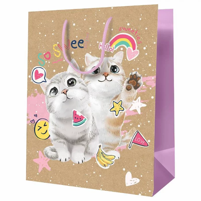 Пакет подарочный 1шт 18*23*10см MESHU "Милые котята", крафт 354840