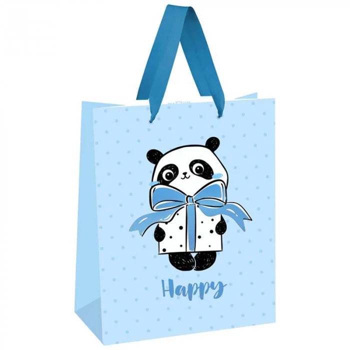 Пакет подарочный 1шт 18*23*10см MESHU "PandaGift_Blue", отд. фольгой, матовая ламинация 339794