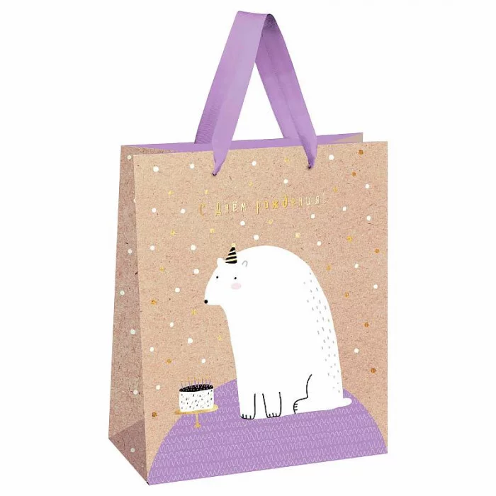 Пакет подарочный 1шт 18*23*10см MESHU "С Днем рождения", отд. фольгой, выборочный лак, крафт 354558
