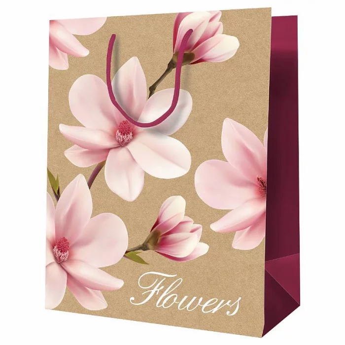 Пакет подарочный 1шт 18*23*10см MESHU "Цветы", крафт 354829