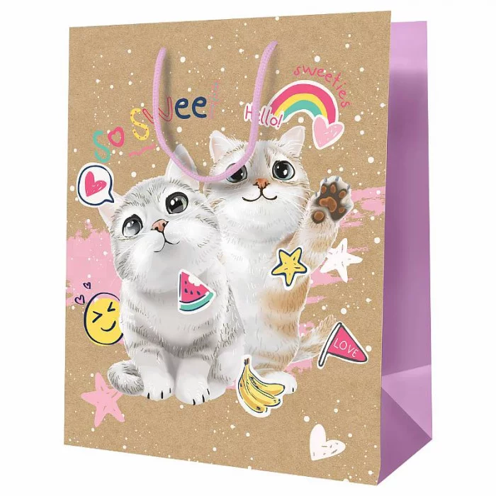 Пакет подарочный 1шт 26*32*12см MESHU "Милые котята", крафт 354849
