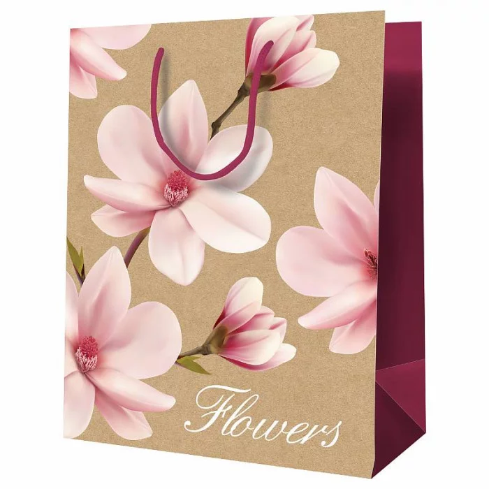 Пакет подарочный 1шт 26*32*12см MESHU "Цветы", крафт 354846