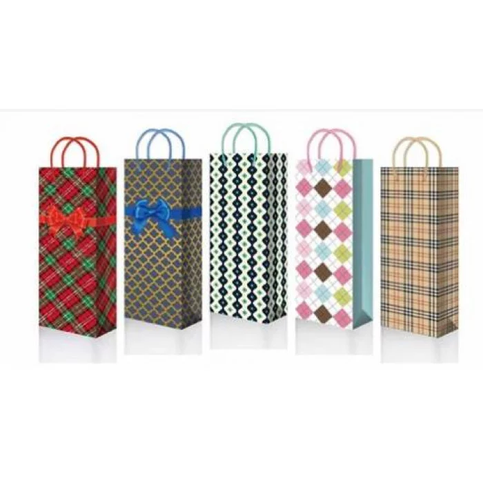 Пакет подарочный бумажный под бутылку Ромбы 12,3*36,2*7,8 1610