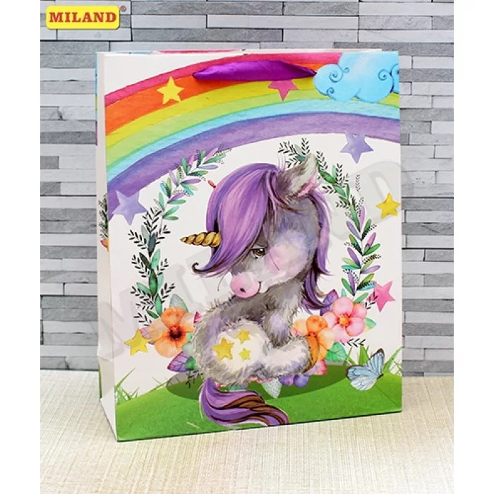 Пакет подарочный Dream Cards мат лам 26.4х32.7х13.6 Очаровательный единорожек плотность 210 ПКП-1403