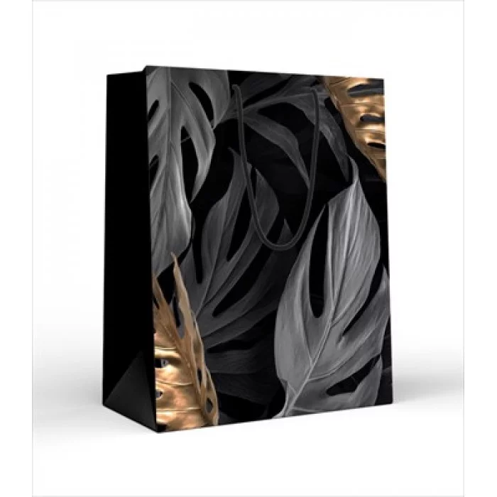 Пакет подарочный (L) Листья на черном Хорошо 15.25.02226