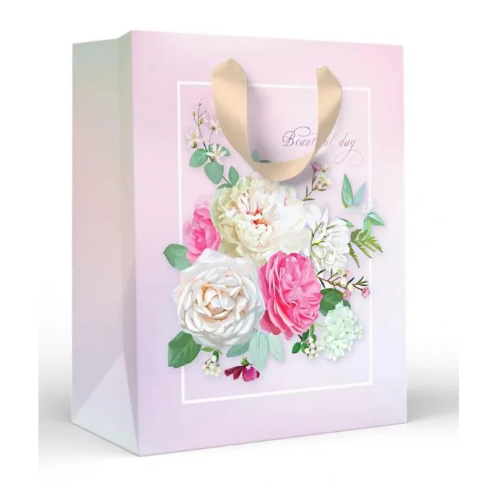 Пакет подарочный "Букет нежности", размер M. Пакет среднего размера с ярким и чувственным принтом станет незаменимым приложением к подарку.