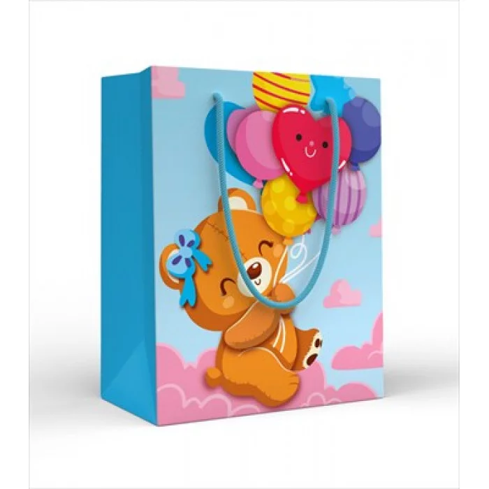 Пакет подарочный (M) Мишка с шарами на розовом облаке Хорошо 15.25.02252
