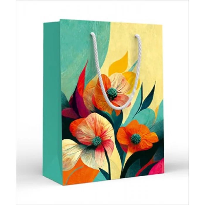 Пакет подарочный матовый (MS) цветы на бирюзовом
