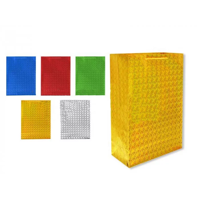 Пакет подарочный S 1492 бум. голог., 45х32х13 см, цвета золо, сереб, красный, синий, зеленый
