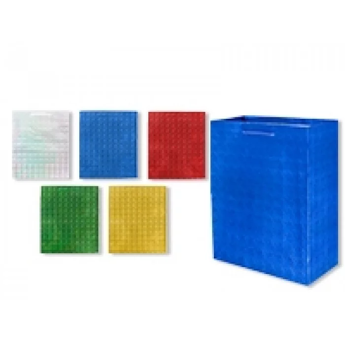Пакет подарочный S 1493 бум. голограф., 32х26х13 см, цв. золотой, серебристый, красный, синий, зеленый