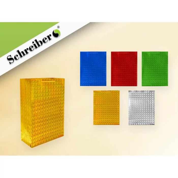 Пакет подарочный S 1495 бум. голограф., 20х14х10 см, цв. золотой,серебристый,красный,синий,зеленый