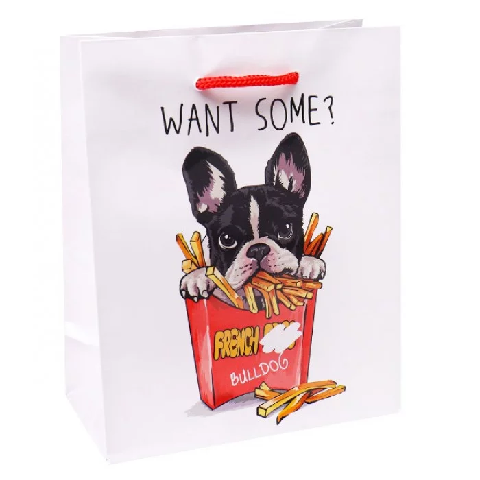 Пакет подарочный с глянцевой ламинацией 11,5x14,5x6 см (S) Французский бульдог с фри,128 г ПКП-6342