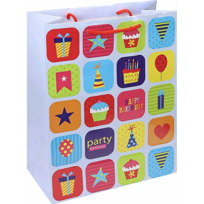 Пакет подарочный с глянц.ламинацией 26,4x32,7x13,6 см (L) Стикеры веселья, 157 г ПКП-4319