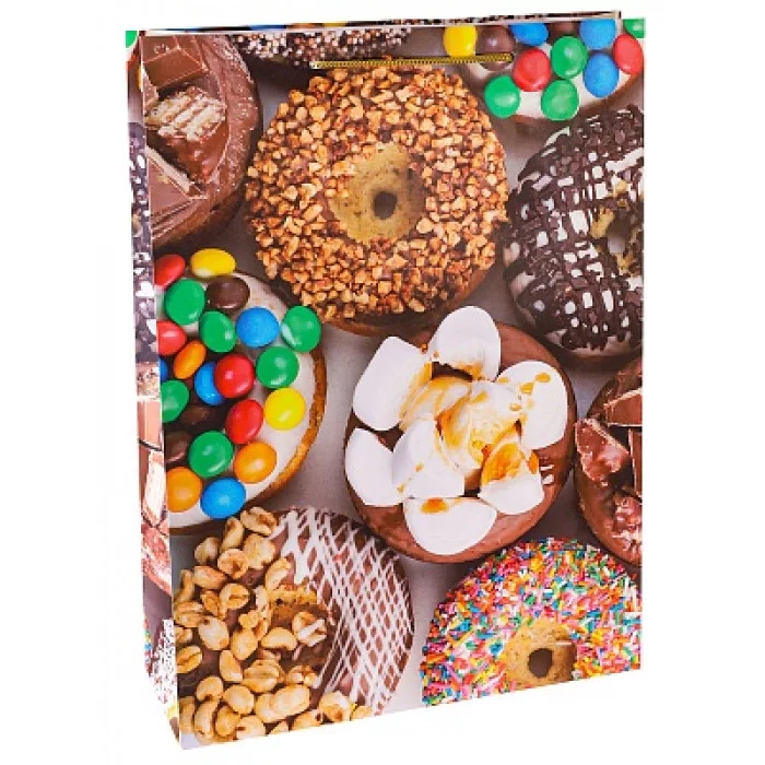 Пакет подарочный с матовой ламинацией 32,4х44,5х10,2 см (XL) Пончики, 157 г ППД-0116