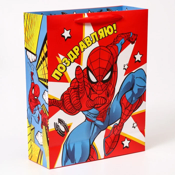Пакет подарочный "Ты супер! Поздравляю!", Человек-паук, 31х40х11,5 см 7153493