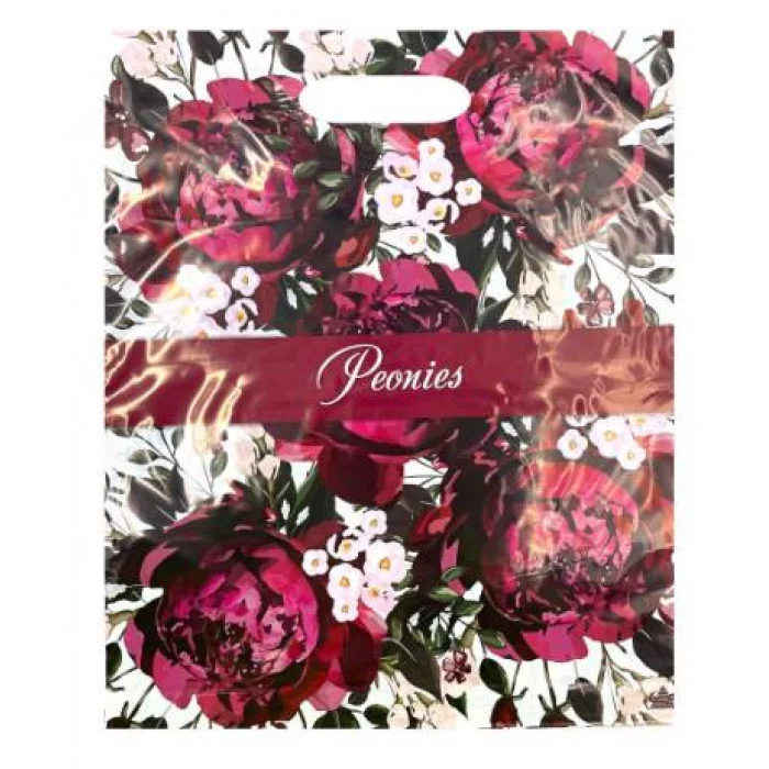Представляем вам стильный и практичный товар - пакет с прорубной ручкой от бренда Тико! Этот пакет выполнен в благородном бордовом цвете с ярким рисунком пионов, что делает его идеальным выбором как для повседневного использования, так и для особых случаев.