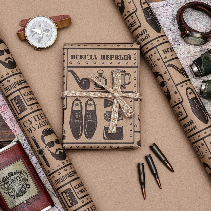 Бумага упаковочная крафт "Супер мужик" 70 х 100 см, 10157103