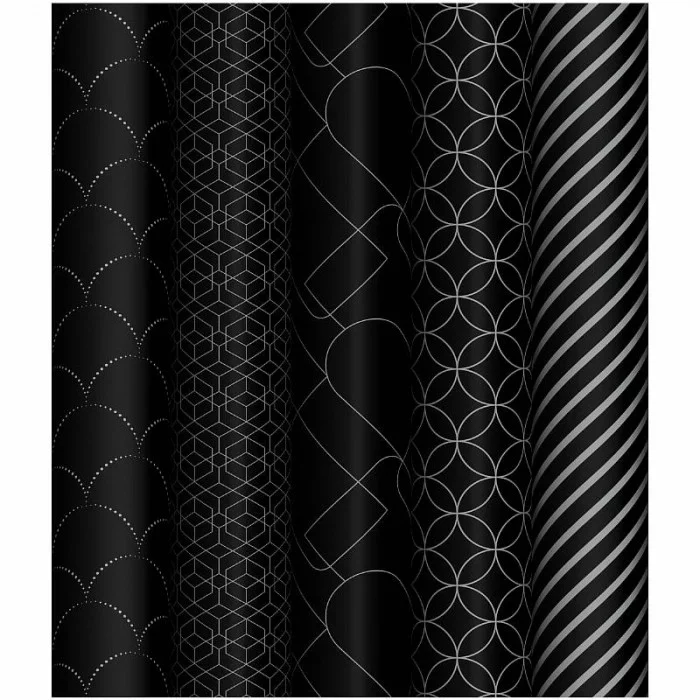Упаковочная бумага 1 рулон, глянц. 70*100см, MESHU "Pattern on black", 80г/м2 358115