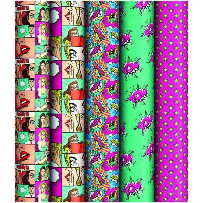 Упаковочная бумага 1шт глянц. 70*100см, ArtSpace "Pop art", 90г/м2, ассорти 5 дизайнов 324399