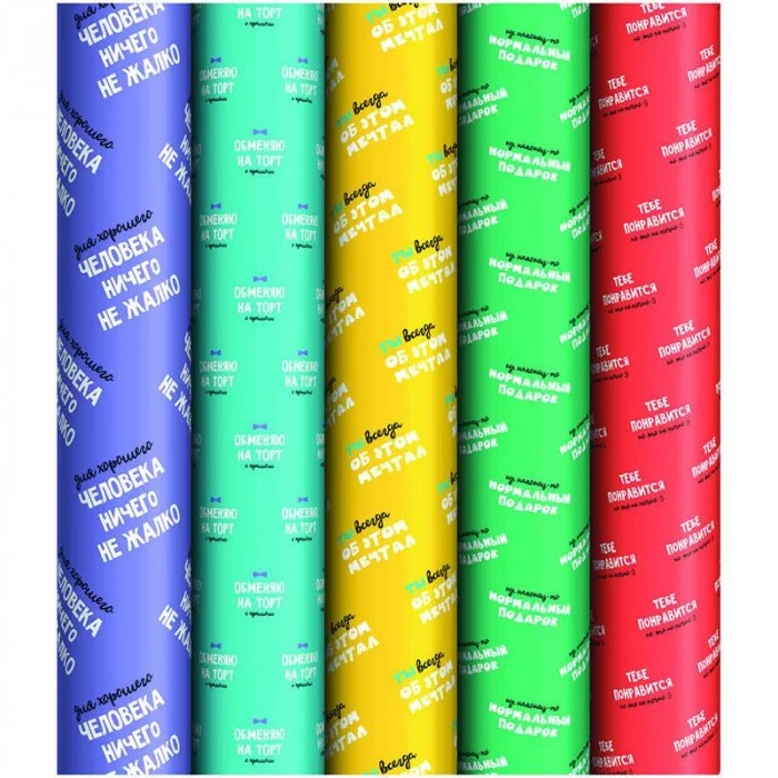 Упаковочная бумага 1шт глянц. 70*100см, ArtSpace "Радужный текст", 90г/м2, ассорти 5 дизайнов 324400