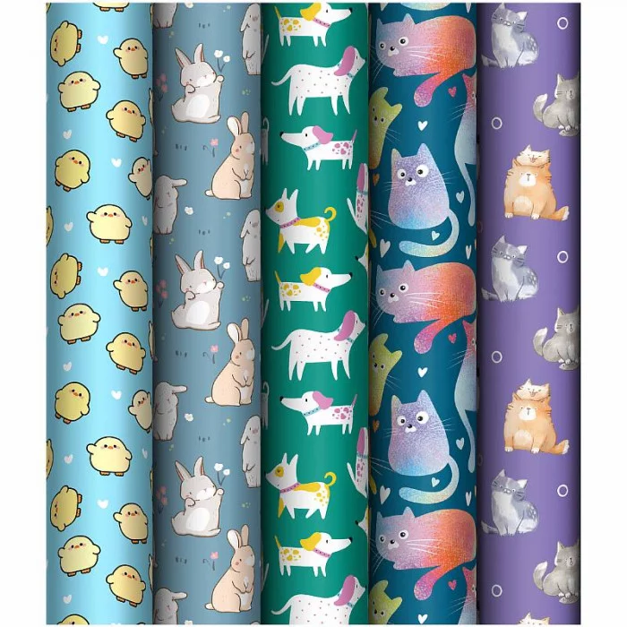 Упаковочная бумага 1шт глянц. 70*100см, MESHU "Любимые питомцы", 80г/м2, ассорти 5 дизайнов 358124