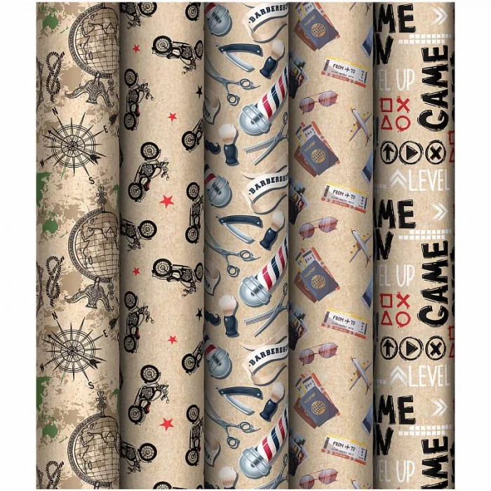 Упаковочная бумага 1шт крафт 70*100см, MESHU "Мужская территория", 70г/м2, ассорти 5 дизайнов 358107