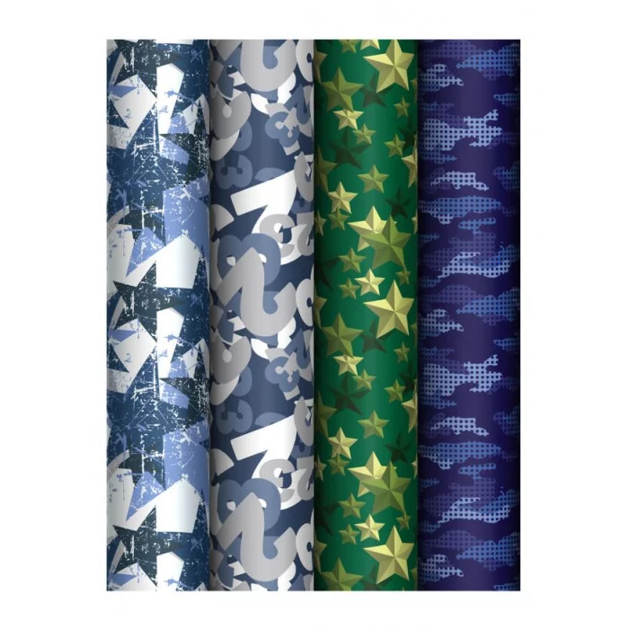 Упаковочная бумага глянц. 70*100см, MESHU "Military", 80 г/м2, ассорти, 4 дизайна 372637