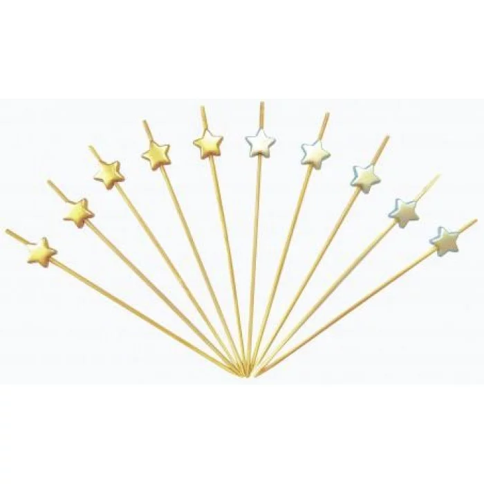 Декоративная пика из бамбука 1шт "Звезда "Золото, Серебро ассорти 120мм. 3806