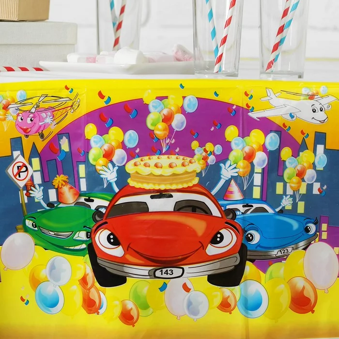 Скатерть 132*220 С Днем Варенья машина с тортом 325404
