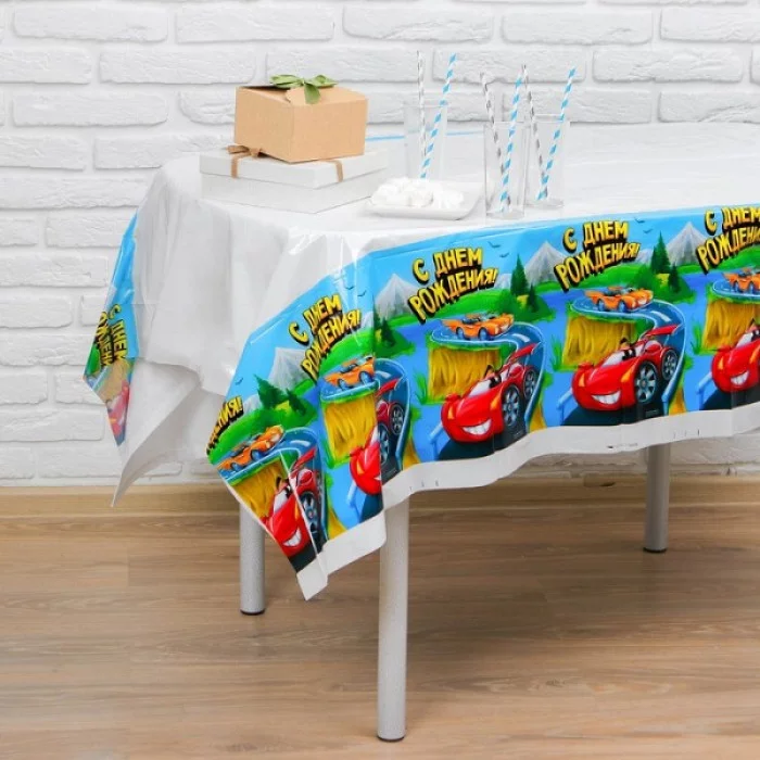 Скатерть "С днем рождения" машинка 182 х 137см 3544749