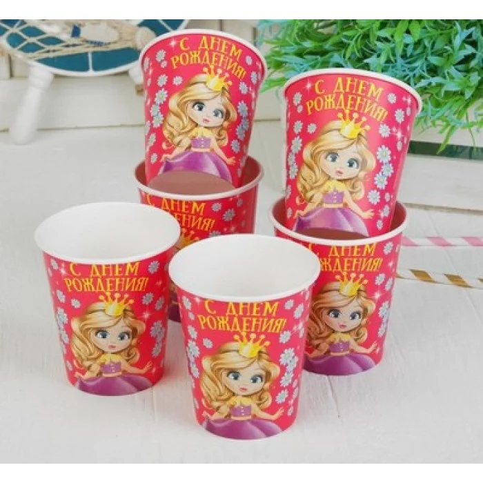 Стакан бумажный "С Днем рождения" принцесса, 250 мл цена за 1 шт 3412814