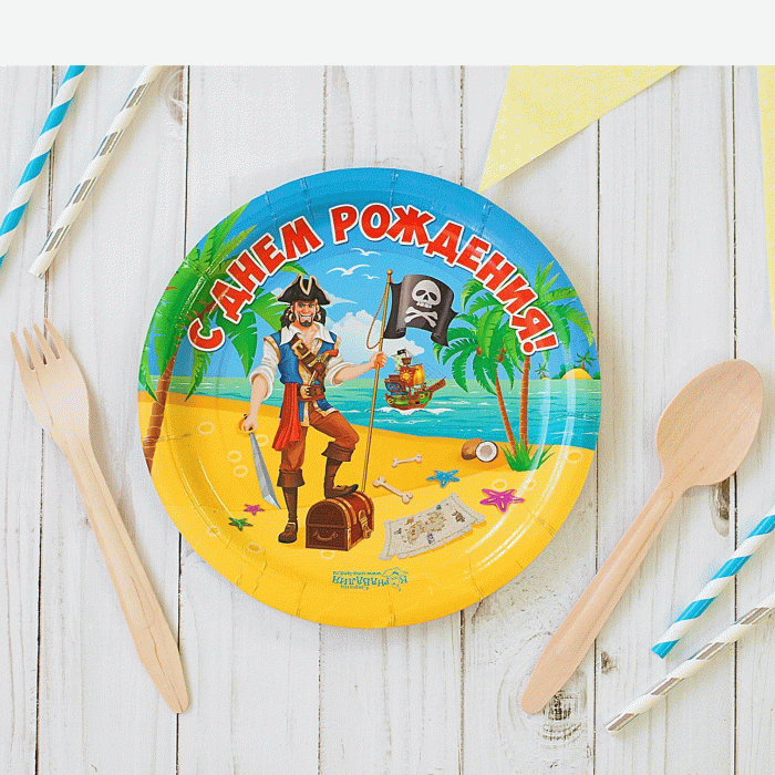 Устали стоять у раковины после большого застолья или бояться, что нерадивый гость разобьёт любимый сервиз? Тарелка бумажная "С Днём Рождения!", пират, 18 см избавит вас от этих проблем! Это идеальное решение для вечеринки или пикника. Яркий дизайн создаст праздничное настроение благодаря оригинальному авторскому рисунку. Бумажная посуда безопасна, не содержит хлор, тяжёлые металлы и токсичные примеси и не выделяет вредных веществ при контакте с горячими продуктами. Используя её, вы заботитесь о себе и окружающей вас природе, ведь тарелки просто утилизируются и быстро саморазлагаются в естественных условиях.